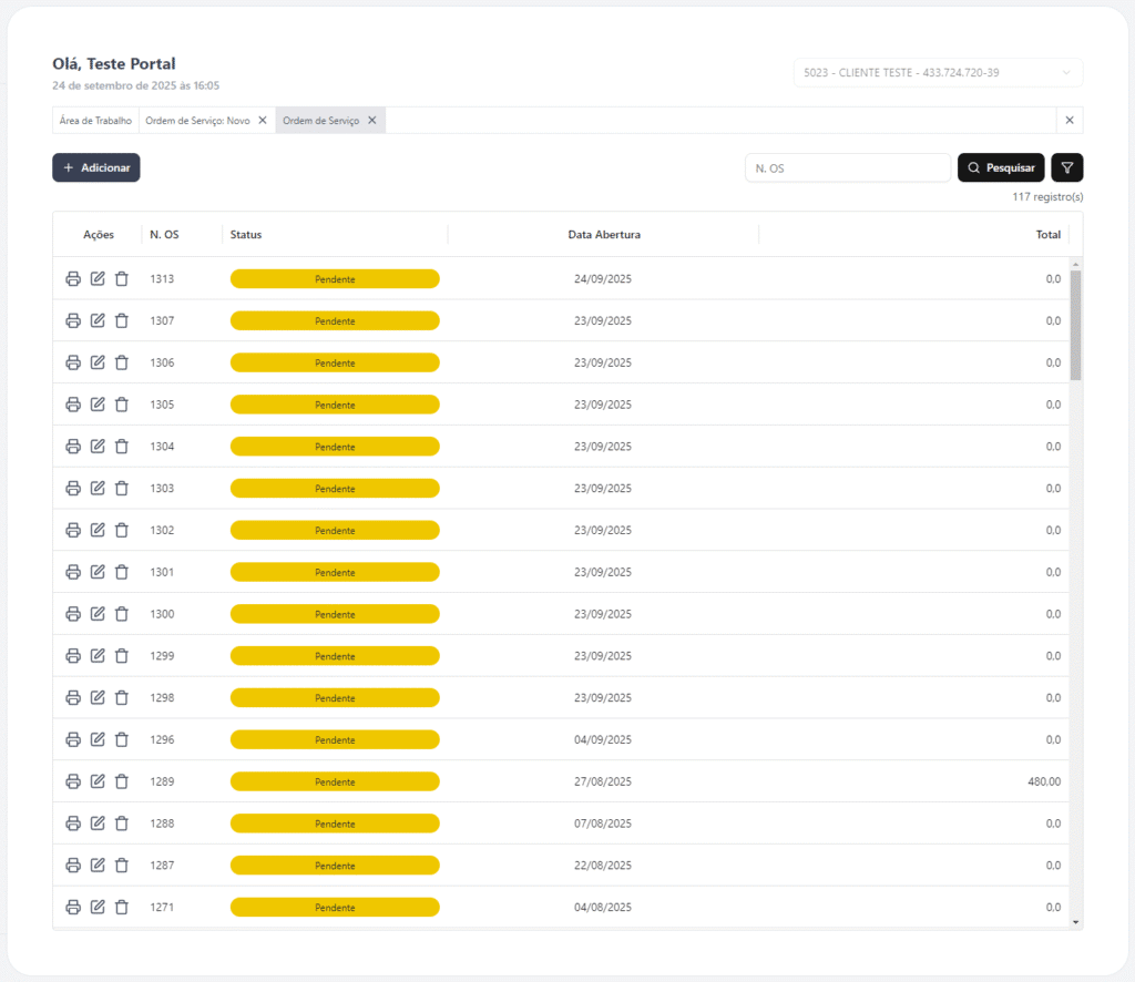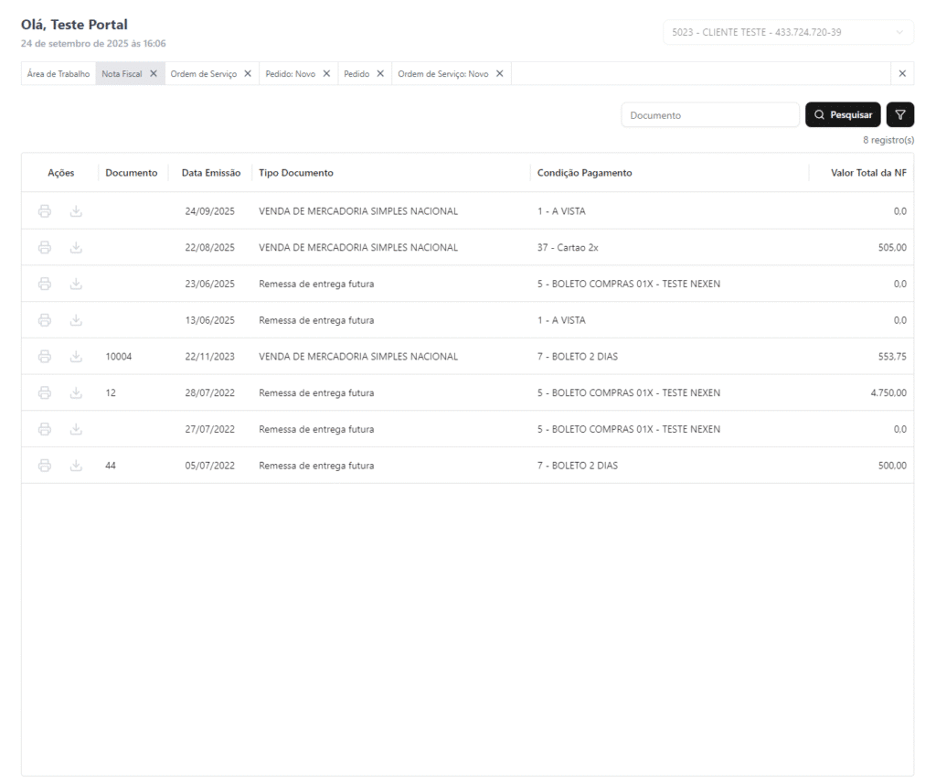 Tudo disponível em um clique – ordens, pedidos, títulos e notas fiscais.